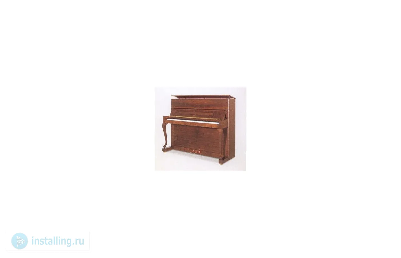 Популярное вертикальное фортепьяно в стиле Demichippendale. Тональный диапазон этого инструмента - 7 1/3 октавы с использованием сурдины для тонов 1-70. Глубина снижения клавиши - 10 мм, игровой вес - 51 г +/-2 г. Настройка - на частоте 440 гц. Стандартный инструмент производится с тремя педалями.