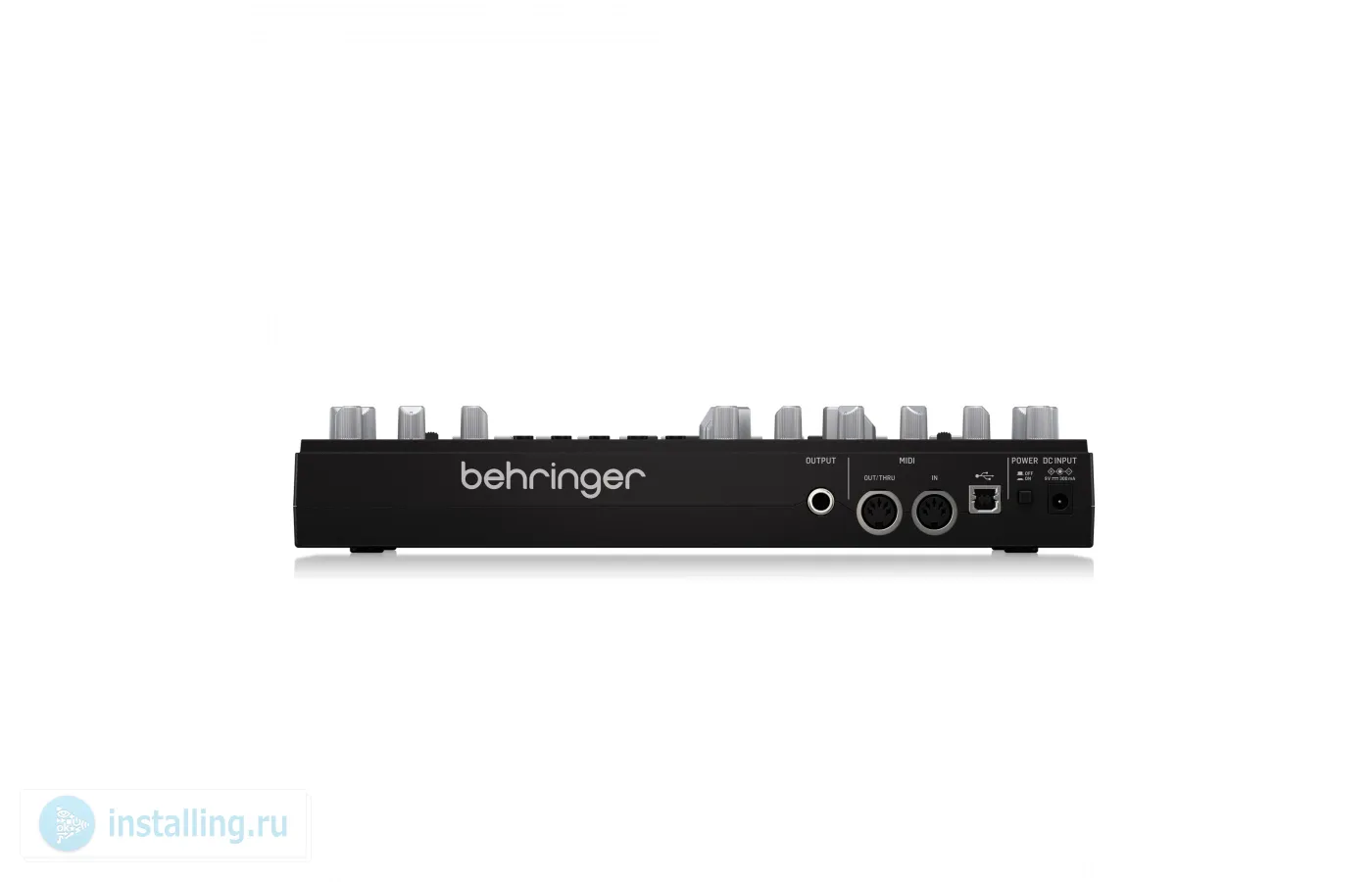 - Разъемы: DС In, USB In, Line Out (6,3 мм), MIDI In/Out; Aux 3.5мм; выходы Sync In и CV/Gate 3.5 мм; выход на наушники 3.5мм;