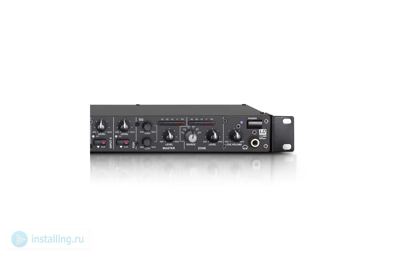 Зонный микшер LD Systems ZONE 622 – двухзонный компактный микшер с шестью линейными и двумя микрофонными каналами, которые можно направить на стереофонический или монофонический мастер-выход. В ZONE 622 предусмотрен вход для системы пожарного оповещения с собственным регулятором громкости и дистанционное включение/отключение звука. Компактный микшер высотой всего 1U подойдет для управления фоновым звуком в отелях, фитнес-центрах, супермаркетах, клубах. Два микрофонных балансных входа оснащены регулировкой чувствительности и кнопкой TalkOver, 12 В фантомным питанием и двухполосным эквалайзером. Первый и второй линейные каналы можно использовать для подключения микрофонов, а шестой канал специально разработан для балансных сигналов FOH. Каналы стерео входа ZONE 622 имеют кнопку Cue и индикацию уровня сигнала. Кроме того, микшер имеет входы 3,5 мм Jack и USB-порт, выход для наушников для предпрослушивания, а также выход для звукозаписи. USB-порт используется в качестве стереовхода и выхода, и позволяет использовать микшер как внешний аудиоинтерфейс. Секции стерео и моно выхода оснащены эквалайзерами, балансными XLR и небалансными RCA выходами.