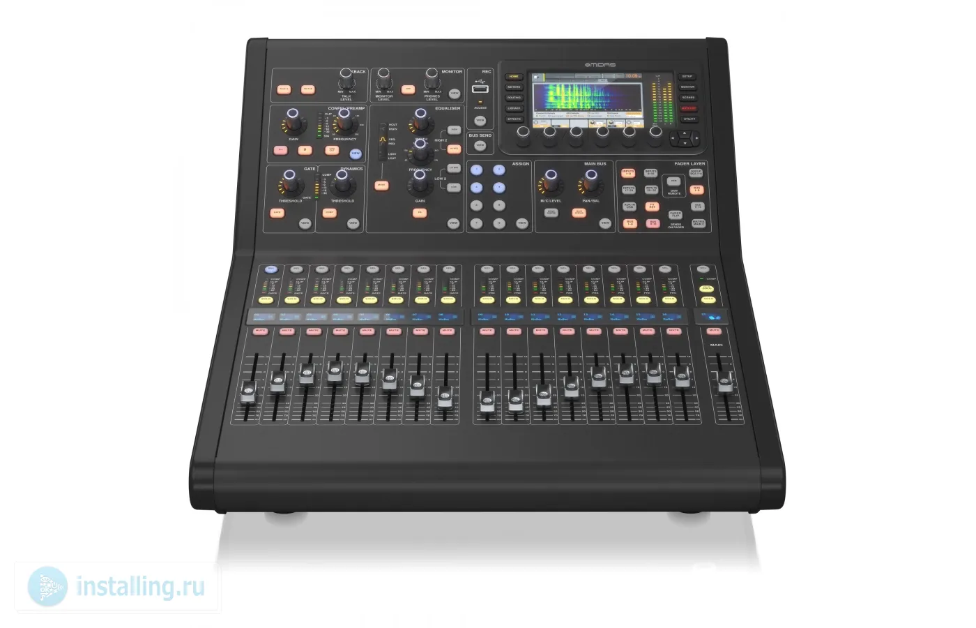 Обработка в выходных шинах Main, Mix, Matrix: 6 полосный параметрический эквалайзер, компрессор/экспандер с возможностью внешнего управления.