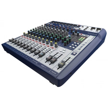 Soundcraft Signature 12 – компактный 12-канальный аналоговый микшерный пульт от знаменитого английского производителя. Микшеры линейки Signature – это высокопроизводительные консоли, которые известны своим отличным качеством и великолепным, очень чистым звуком, они отличаются широким динамическим диапазоном и впечатляющим соотношением сигнал/шум. Модель оборудована 8 микрофонными предусилителями Soundcraft® Ghost, которые обычно устанавливаются на топовые модели, высококачественными 60-мм фейдерами и трехполосным эквалайзером Soundcraft® Sapphyre. Предусмотрены разъемы XLR и входы Hi-Z для прямого подключения гитар и других инструментов. Возможности коммутации включают также наличие двух входов USB и двух выходов. Модель оснащена набором встроенных эффектов Lexicon студийного качества, включая реверберацию, хорус, модуляцию и другие. Микшер Signature 12 способен длительное время работать в самых жестких условиях концертных площадок и туров, он заключен в прочный и надежный металлический корпус, оснащен универсальным встроенным блоком питания.