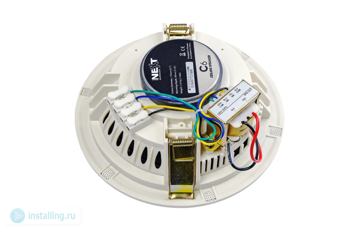 Динамик 6,5". Частотный диапазон: 70-16000 Гц. RMS мощность 6 Вт. Режим работы: 100V 0.75 Вт | 1.5 Вт | 3 Вт. Чувствительность: (1Вт, 1м) 90 Дб. Максимальное звуковое давление SPL: 97.8 дБ. Дисперсия: 85° коническая. Гриль подходит для покраски, съемный логотип. Цвет: белый. Материал корпуса: пластик. Габариты: диаметр 190 мм, глубина 79 мм, диаметр выреза для монтажа 170 мм. Вес: 0.67 кг. Рекомендованнные усилители мощности MX120 | MX350.