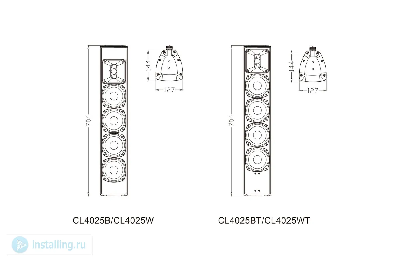 Серия CL4025 представляет собой акустическую систему колонного типа с различными цветами и функциями. Продукт соответствует стандарту IP56. Звук мягкий и сбалансированный. Корпус изготовлен из алюминиевого сплава. Буквы B и W после модели обозначают черный и белый цвет соответственно, а буква T представляет собой конфигурацию с трансформатором.