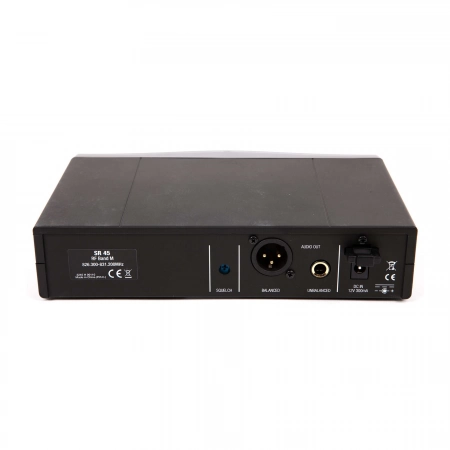Радиосистема 45 Pres Set BD-A оборудована портативным передатчиком. С помощью передатчика пользователь может поставить микрофон в три режима: Включено, Выключено и Без Звука. Также на передатчике находится ручка регулировки чувствительности микрофона. Передатчик может работать, как и от батарейки, так и от аккумулятора. К передатчику могут подойти любые миниатюрные микрофоны AKG, которые снабжены L-разъемом.