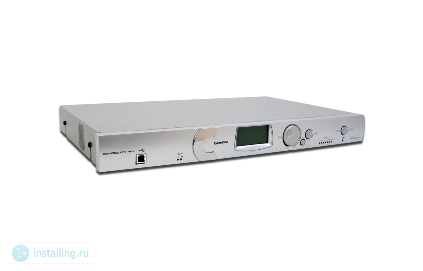 Converge Pro TH20 – телефонный интерфейс для конференц-системы Converge Pro. Позволяет продуктам Converge Pro, оборудованным одним портом для телефонной линии, осуществлять селекторную связь. С помощью нескольких TH20 число телефонных линий может быть увеличено до 16. Дополнительно имеет два входных и два выходных порта аналоговых аудиосигналов линейного уровня. DSP-обработка сигналов, в том числе телефонных. Фирменное ПО Converge Console для расширенных настройки и управления, также доступны RS-232, сухие контакты, web-интерфейс.