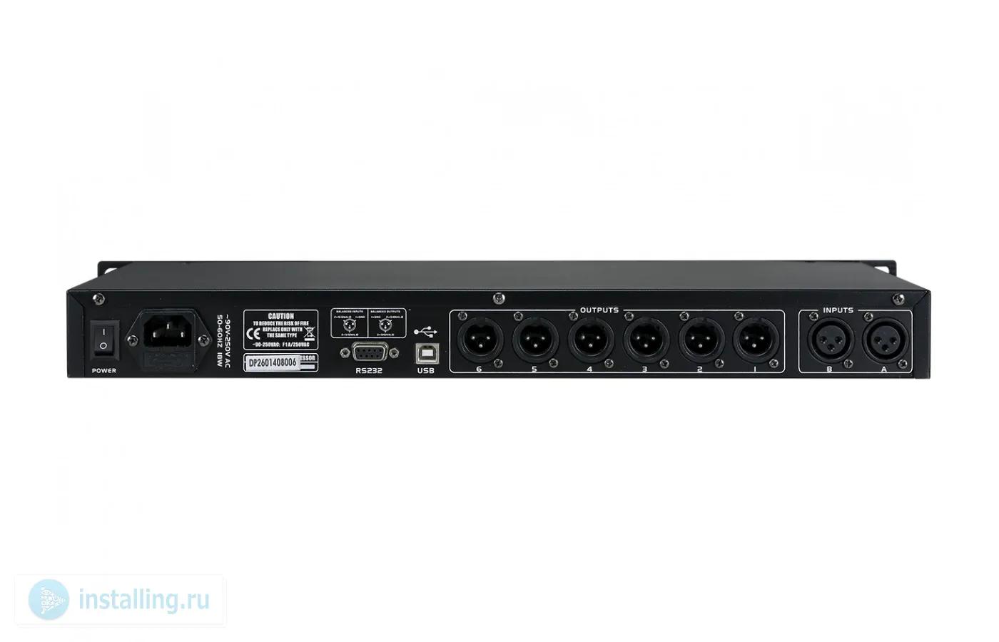 Цифровой зуковой процессор (24bit/ 48KHz) для акустических систем. Частотный диапазон ± 0.5dB (20Hz to 20.000Hz). Входы 2 шт.3 pin XLR, выходы 6шт. 3 pin XLR, RS-232, USB Type B.Функции: Equalization, Crossover, Compressors ands Limiters. Управление на передней панели. Габариты ШхГхВ: 483 x 168 x 44.5. Вес 3,6 кг.