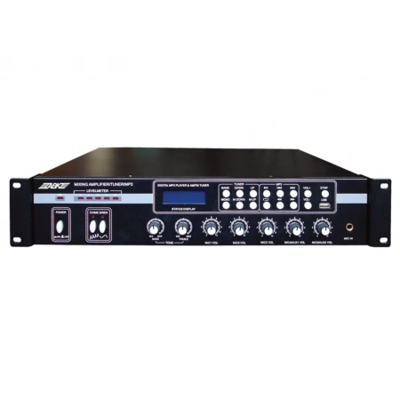 Выход: 70/100В, мощность: 120Вт канал, вход: 5мик, 1 AUX, циф.AM/FM тюнер, MP3, USB