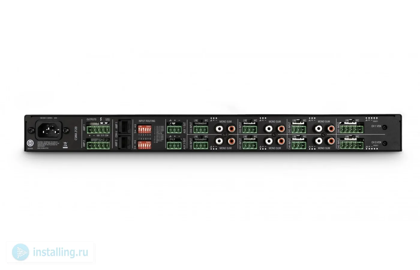 JBL CSMA 2120 представляет собой инсталляционный микшер с усилителем мощности. Микшер имеет 8 входных каналов из которых два микрофонно-линейных канала и шесть стереосуммарных канала. Он входит в состав многофункциональных инсталляционных усилителей с высокой производительностью и высокой выходной мощностью. Особенностью этой модельной серии является разработанная компанией Crown фирменная технология DriveCore. Усилитель оснащен системными интеграторами с широким спектром дополнительных возможностей, которые необходимы для профессиональных инсталляций. Усилитель мощности удобен для установки в рэковую стойку. 8-канальный трансляционный усилитель JBL CSMA 2120 уверенно продолжает стоять на лидерских позициях компании JBL (США) в категории профессиональных и коммерческих трансляционных усилителей.