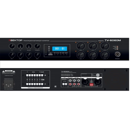 6 зон, AMFM тюнер, MP3 плеер, 350 вт/100В, регулировкауровня каждого выходного сигнала.2 микр, с фантомным питанием и выбором приоритета 2 лин входа, 1Aux вых. ,ИК-пульт в комплекте. Функция аварийного отключения, 220В, рэковое крепление в комплекте, 482х88х400 мм. Вес 16,5 кг.