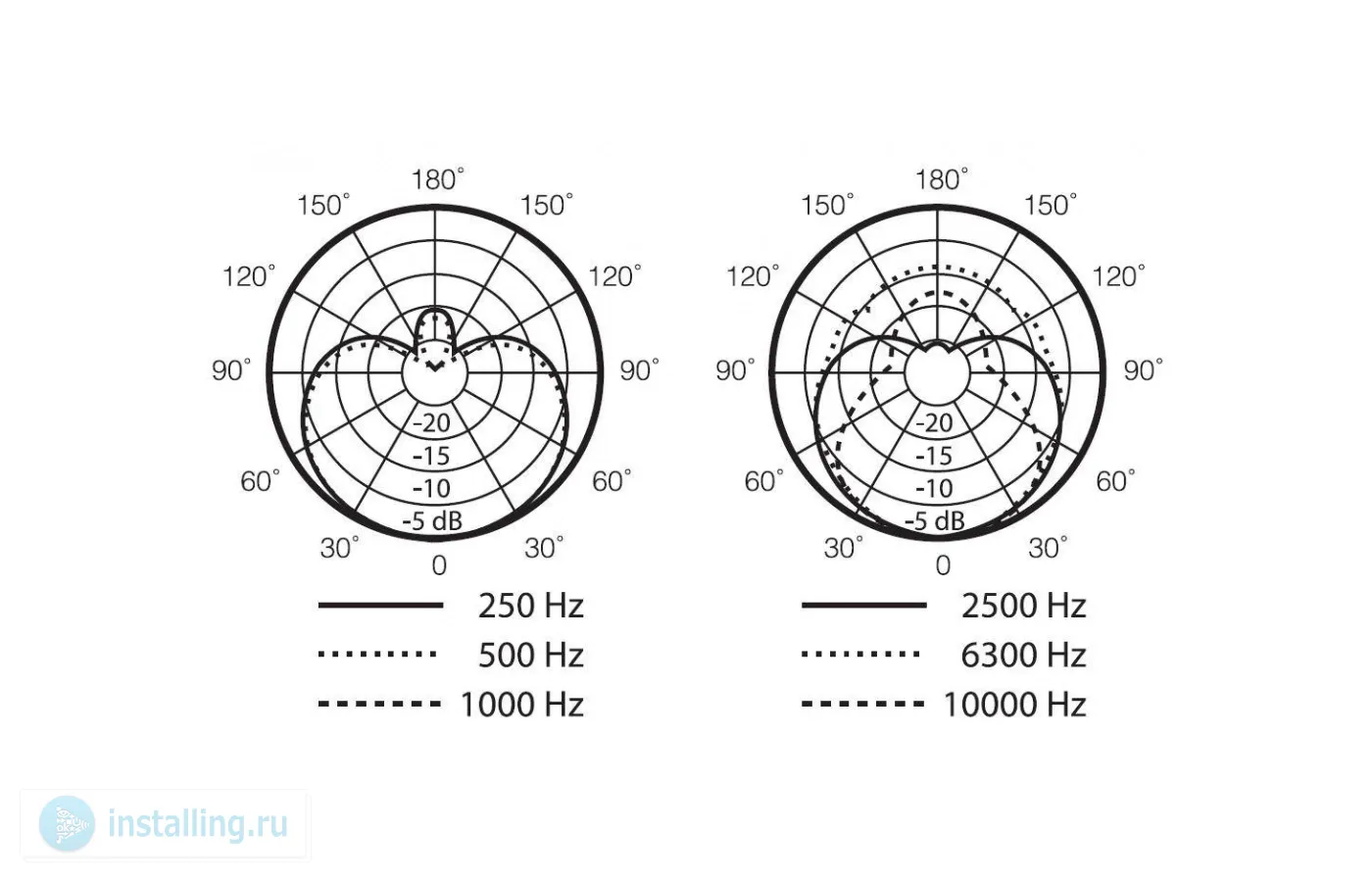 Диаграмма направленности: кардиоидная, симметричная, с равномерной частотной характеристикой;