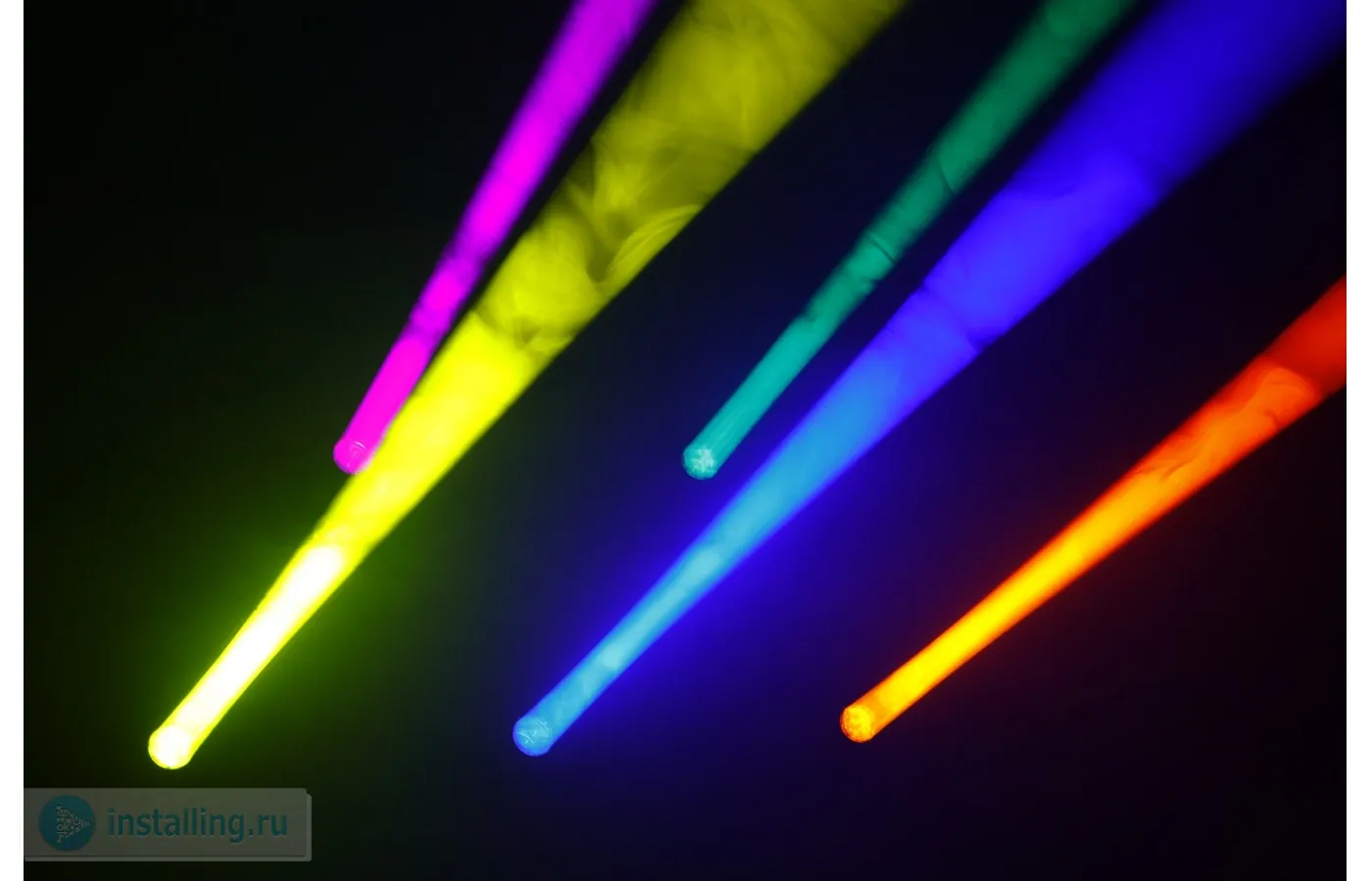 Отличительной особенностью является специально разработанная оптическая система, которая позволяет излучать мощный световой поток с освещенностью на расстоянии 2,5м 104000 Люкс, и это впечатляющий показатель! PROBEAM150, это классическая голова вращения Бим (узкий луч) с светодиодным источником света 7500К и углом раскрытия 2`. На борту установлены 1 статичное колесо гобо и 1 колесо цвета с 14 цветами + белый. Отличительными профессиональными характеристиками являются также переключаемая, вращающаяся 8-гранная призма и моторизированный фокус. PROBEAM150 может управляться по 10 или 12 каналов DMX, а также может использоваться в автономном режиме или от звуковой активации. Для этого авто-программ запрограммированы несколько отличные световых шоу. При всем наборе функций и режимов, вес головы 7кг, а его компактные размеры составляют 362x177x362 мм. Отметим также уровень шума от вентилятора охлаждающей системы, который имеет показатель всего около 60Дб. Мы рекомендуем PROBEAM150 как для мобильных, так и для стационарных световых шоу