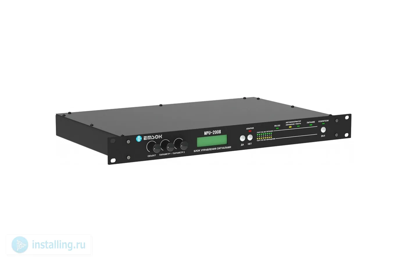 Блок управления сигналами MPU-2008 является центральным процессором системы оповещения, позволяет построить систему оповещения 3,4 и 5 типа на 64 зоны. Обладая встроенной памятью, позволяет записывать, хранить и воспроизводить сигналы оповещения и музыкальные программы в формате MP3, PCM длительностью до 1 часа.