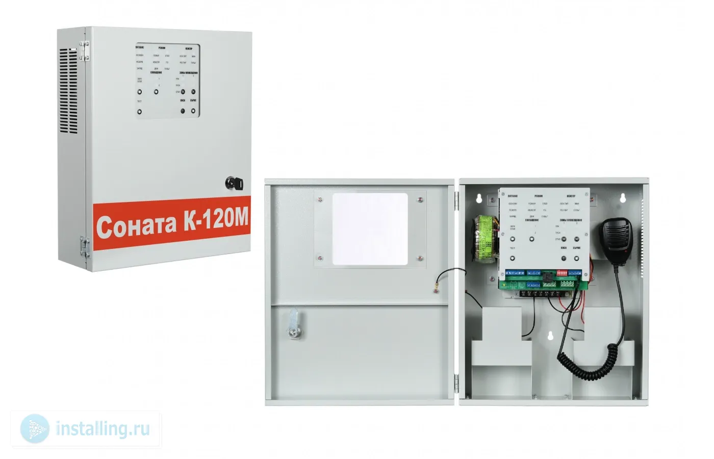 Соната К-120М – двухзонный моноблок речевого оповещения предназначен для трансляции в системах пожарной сигнализации с контролем линий управления и оповещения, предварительно записанных речевых сообщений, музыкальных программ или сигналов ГО и ЧС и речевых сообщений через встроенный микрофон, с возможностью наращивания мощности системы с помощью Соната К-120У.