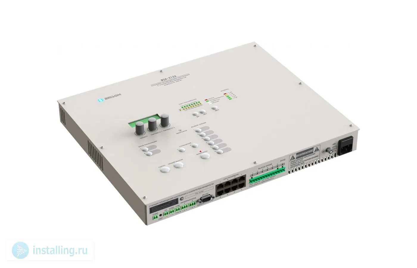 С усилителем мощности класса D 240 Вт, 100 В, 20…20000 Гц, 6 зон оповещения, 5 режимов оповещения оперативный; по расписанию; через заданный интервал времени; по команде от ПС; по команде ГО ЧС, встроенный микрофон и пульт управления, контроль зон, встроенная память на 32 речевых сообщений, общей длительностью до 1 ч, 8 портов расширения RS-485, 2 линейных входа, 1 вход проводного вещания 15/30 В, часы реального времени, настройка с панели управления и ПК RS-232, 430х355х45 мм, 6,2 кг