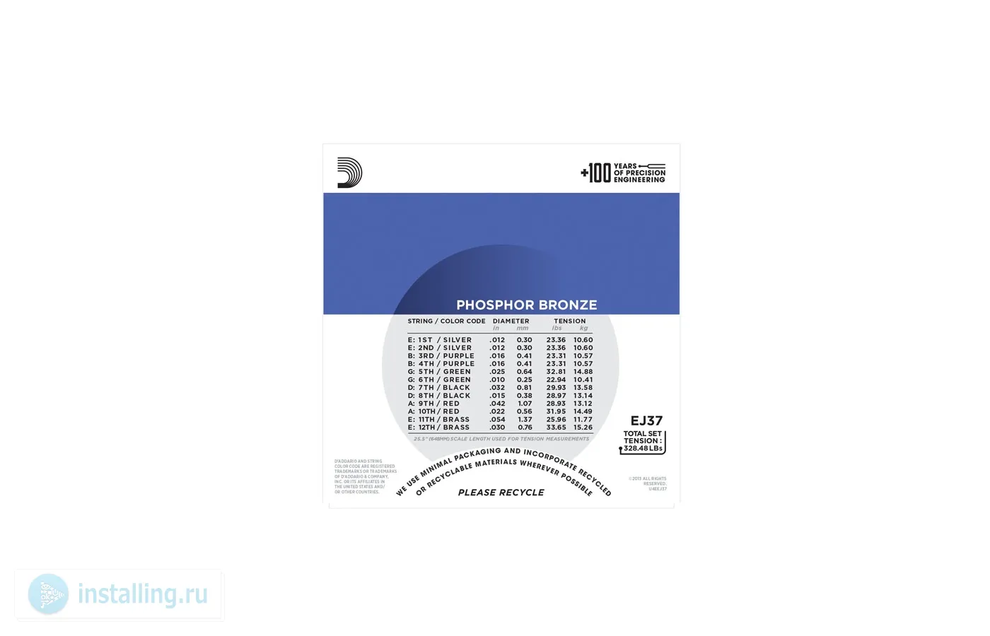 Комплект EJ37 из 12 струн D'Addario, включающий верхние струны среднего калибра и нижние струны крупного калибра, сочетает удобство исполнения, характерное для комплекта среднего калибра, с сильным звуком и проекцией крупного калибра. Этот комплект идеален для агрессивной игры перебором.