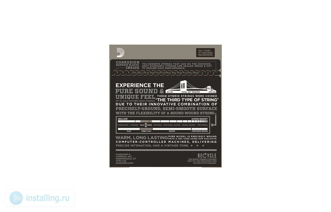Струны ENR71 сочетают легкость исполнения, характерную для обычных комплектов 45-100, с преимуществами эксклюзивной «полукруглой» обработки при изготовлении. Комплект соответствует параметрам басовых инструментов с длинной мензурой при длине мензуры до 36 1/4 дюйма.