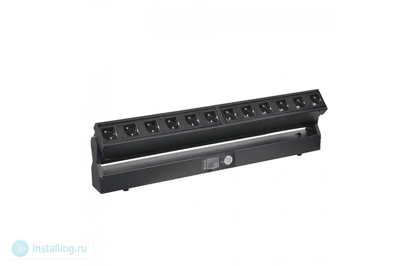 BAR 12x40 Вт., RGBW., Зум: 5°-35°., DMX512 (14/20/57 Ch)., Dimmer: 0-100%., Tilt: 220° (16bit)., Мощность: 500 Вт., Габариты: 102х10.75х27.7 cm., Вес: 14,8 кг.