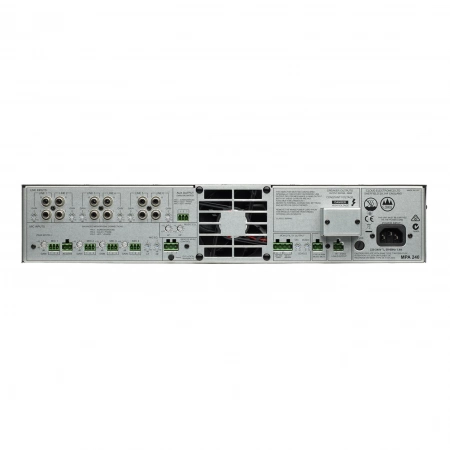 240Вт на 4 Ом или 25/70/100 В, 6 музыкальных и 4 микр. входа