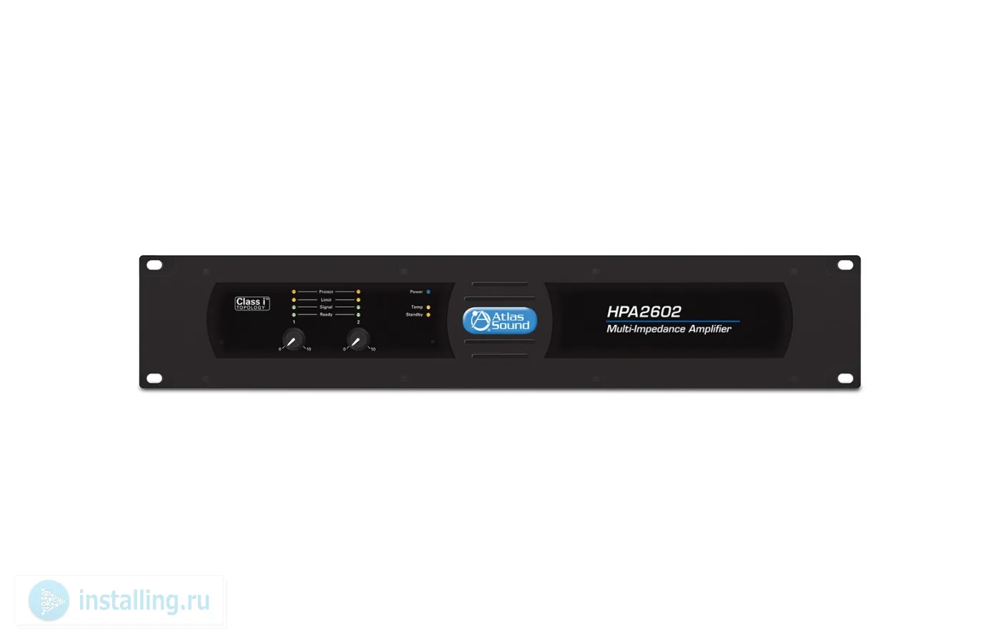 HPA2602 – двухканальный усилитель мощности. 2х1300 Вт – 70 В, 2х800 Вт – 8 Ом, 2х1300 Вт – 4 Ом, 2х1800 Вт – 2 Ом, 1х2500 Вт – 8 Ом, 1х3200 Вт – 4 Ом. Удаленное включение, опциональная карта Dante. Поддерживает работу в низкоомных системах от 2 до 8 Ом, а также оборудован линейным трансформатором для подключения к системам с напряжением линии 70 В. Уровень усиления устанавливается отдельно для каждого канала с помощью шаговых потенциометров на лицевой панели прибора, предусмотрена крышка для защиты от случайного изменения настроек. В мостовом режиме прибор способен обеспечивать 3200 Вт мощности на один канал при 4-омной нагрузке. Прибор также способен работать в стереофоническом и параллельном режимах.