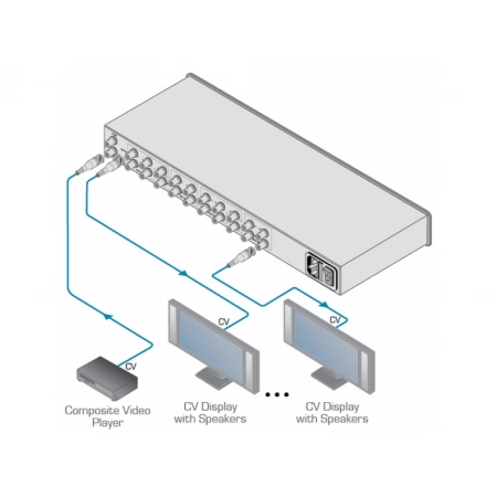 - Распределяет с одного входа на 20 идентичных выходов сигнал композитного видео или однокомпонентного видео, или SD-SDI