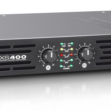Усилитель мощности LD Systems XS 400 представляет собой очень компактный и надежный усилитель мощности класса D с выходной мощностью 200 Вт на канал при 4 Ом и частотным диапазоном от 20 Гц до 20 кГц. Технология усилителя класса D от LD Systems позволяет уместить высокую производительность в минимальное пространство без потерь энергии. Усилитель высотой 1U и весом всего 3,4 кг предназначен для профессионального использования, и идеально подходит для мобильного применения и для тех, кто ценит пространство и мобильность. XS 400 оснащен системой защиты от перегрузок и коротких замыканий и функцией плавного пуска. Входы выполнены на разъемах RCA, XLR и TRS, а выходы - SpeakON и клеммах. На задней панели расположен переключатель режимов, регулятор гейна, лимитера и функции ground-lift. Светодиодная индикация отображает питание, наличие сигнала, срабатывание систем защиты, лимитера и режим работы. XS 400 впечатляет динамичным и чистым звучанием.