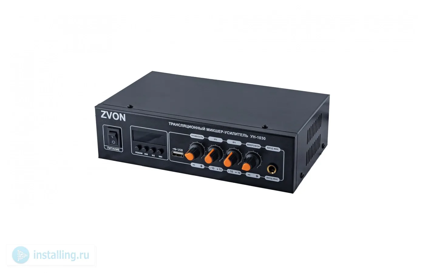 Настольный трансляционный микшер-усилитель с медиа-плеером USB;30Вт;100В/4-16 Ом; микрофонный вход; линейный выход/вход. Питание: AC 220В. Габ.разм.: 220х130х65мм. Корпус: металл; цвет: чёрный.