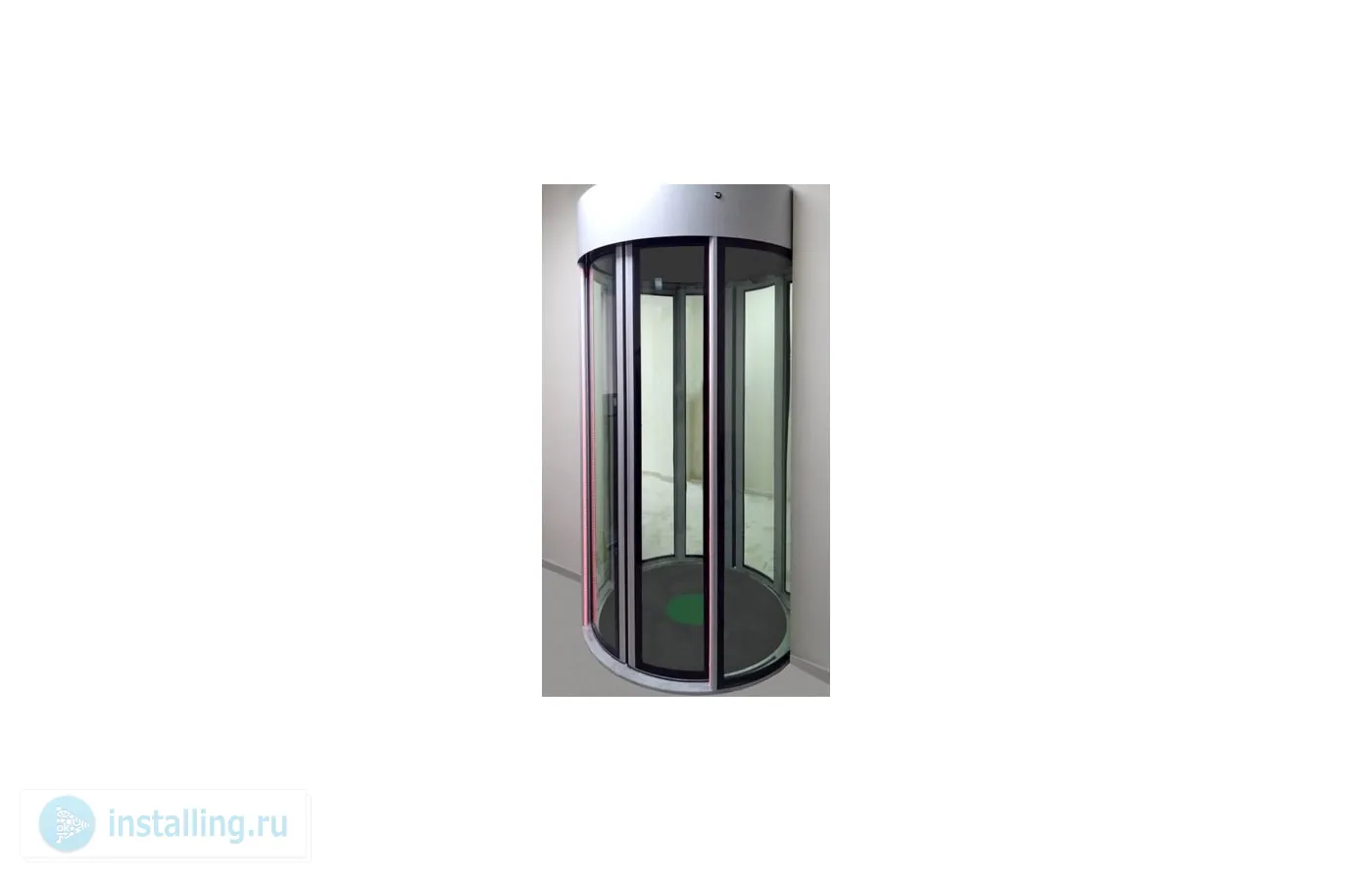 Шлюзовая кабина цилиндрическая. Ширина прохода 600 мм, ударопрочное стекло класса защиты Р5А толщиной 11 мм, модульная, каркасно-рамная конструкция, двунаправленный проход, пропускная способность 7 чел/мин, стандартный серый цвет RAL 7040, внутреннее освещение, двухзонный контактный мат, установка на чистый пол, активная и пассивная безопасность створок дверей, светодиодная индикация, интеллектуальная защита от взлома, пульт управления, 220 В, 300 Вт, -5...+50 °С, 1040х2400 мм, 420 кг
