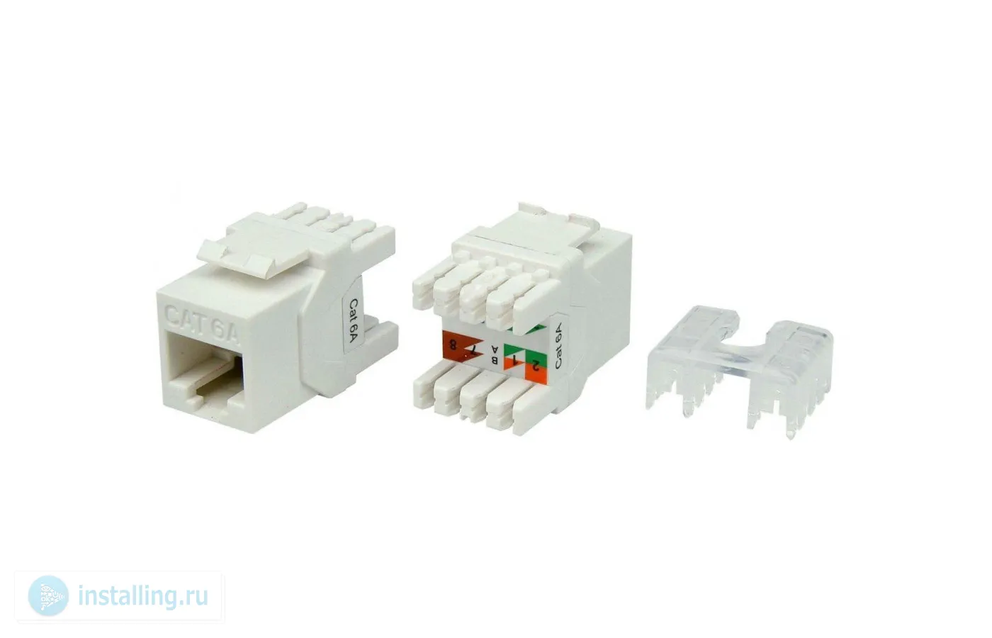 Вставка Keystone Jack RJ-458P8C , категория 6a 10G , тип 180 градусов, белая.