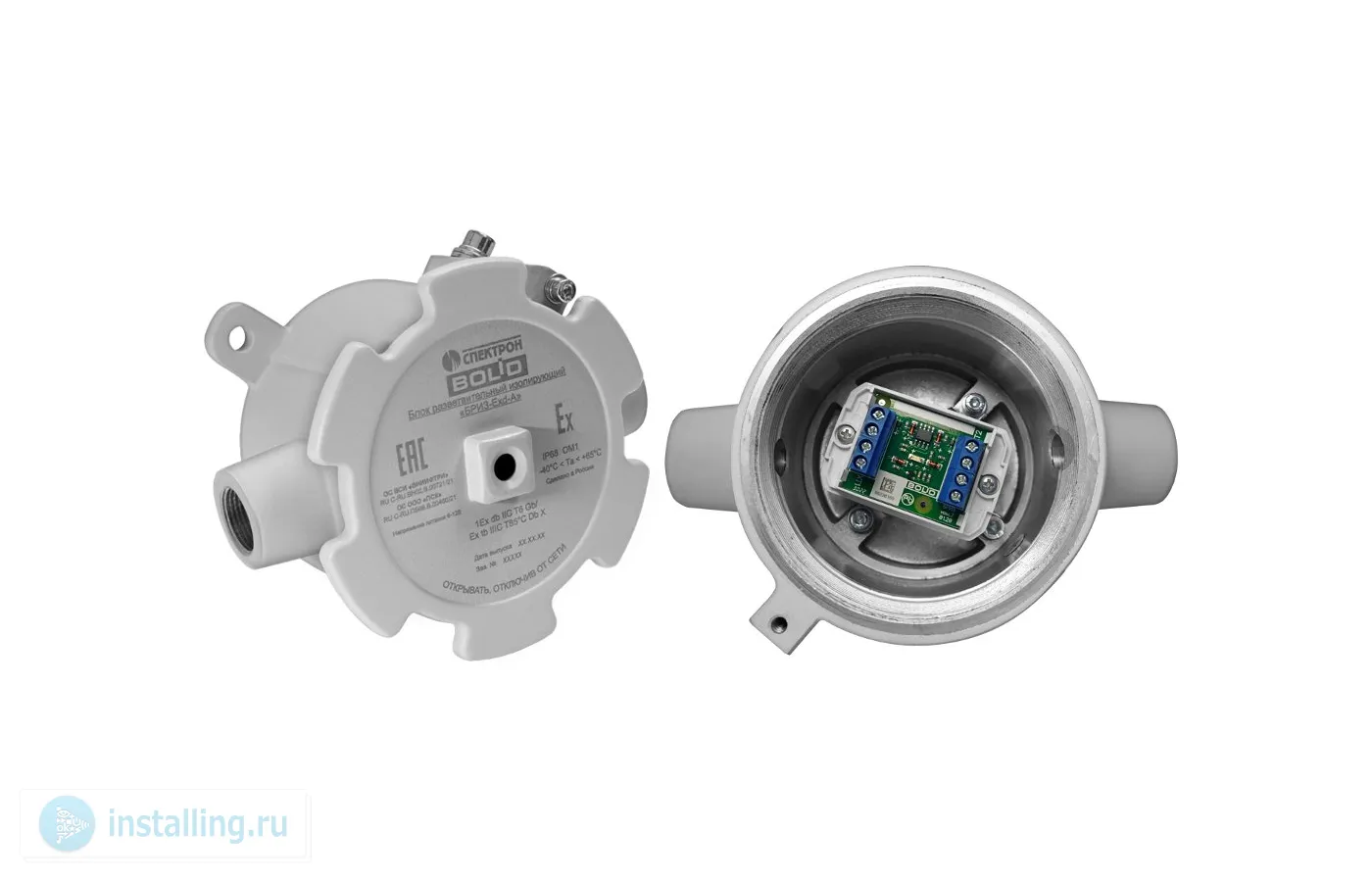 Блок разветвительно-изолирующий взрывозащищенный 1Ex db IIC T6 Gb/Ex tb IIIC T85oC Db / PВ Ex db I X/1Ex db IIC T6 Gb; U-пит.6...12 В (ДПЛС), I-потр.40 мкА (деж.); IP68, t-раб.-40...+65°С, 140х77 мм, 0.95 кг. Корпус из алюминиевого сплава АК9. Без кабельных вводов.