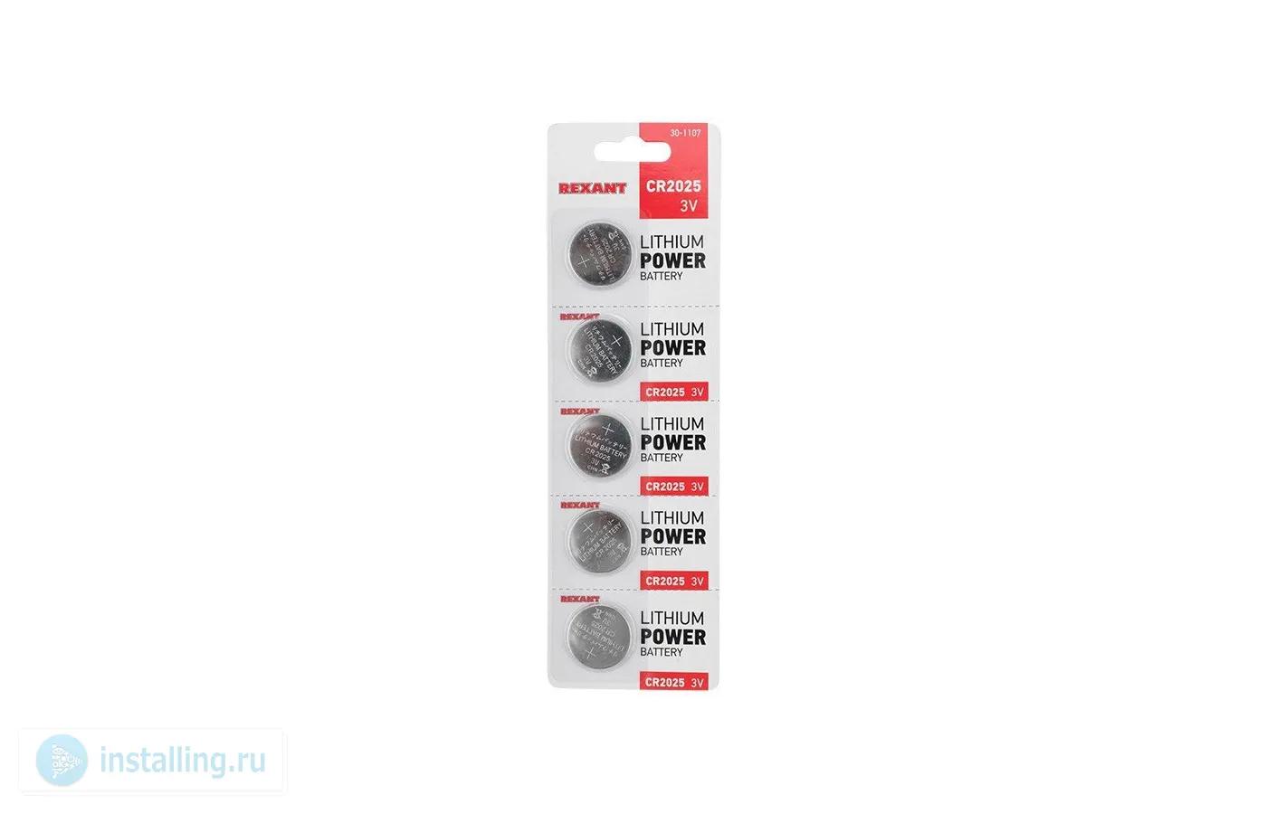 U-номин. 3 В, типоразмер CR2025, 5 шт. в блистерной упаковке