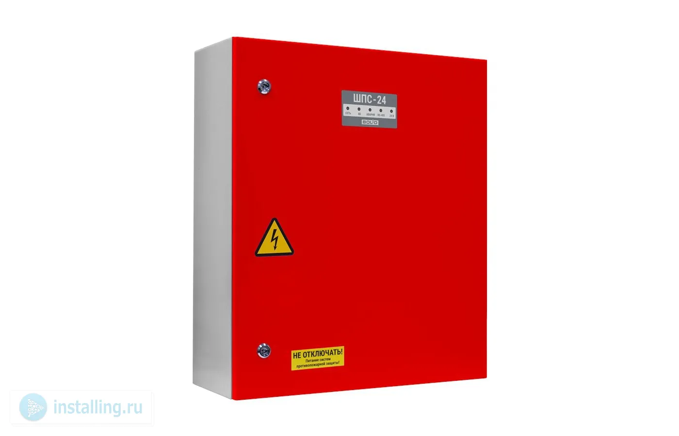 Шкаф для монтажа средств пожарной автоматики с креплением на DIN-рейку; 2 ввода питания; U-вх.180…265 В, U-вых.27.2±6 В, I-ном.3 А, I-макс.3.5 А, под два АКБ 12 В 26/40 А·ч; встроенный блок коммутации БК-24-RS485 (две изолированные линии интерфейса RS-485 для подключения к компонентам ППКП и ППКУП расположенным за пределами ШПС, одна линия RS-485 для подключения компонентов ППКП внутри ШПС; 7 выходов для подключения к приборам внутреннего интерфейса RS-485 и 7 выходов питания; IP41, t-раб.-10…+40°C, 700х600х225 мм. Дверь красного цвета. Возможность установки монтажного комплекта МК-1.