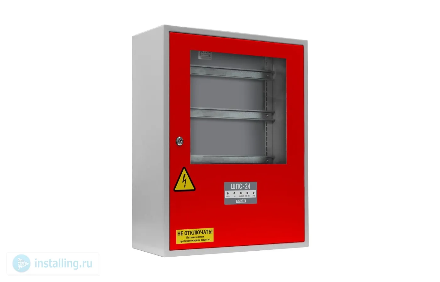 Шкаф для монтажа средств пожарной автоматики с креплением на DIN-рейку; 2 ввода питания; U-вх.180…265 В, U-вых.27.2±6 В, I-ном.3 А, I-макс.3.5 А, под два АКБ 12 В 26/40 А·ч; встроенный блок коммутации БК-24-RS485 (две изолированные линии интерфейса RS-485 для подключения к компонентам ППКП и ППКУП расположенным за пределами ШПС, одна линия RS-485 для подключения компонентов ППКП внутри ШПС; 7 выходов для подключения к приборам внутреннего интерфейса RS-485 и 7 выходов питания; IP41, t-раб.-10…+40°C, 700х600х225 мм. Дверь красного цвета. Дверь с прозрачным стеклом.