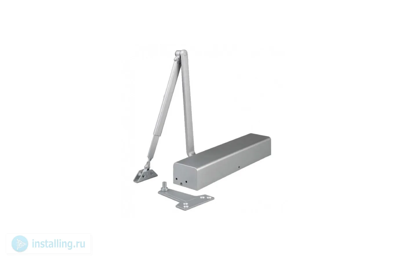 Доводчик для дверей весом до 150 кг, двухскоростной, демпфирование открывания - ветровой тормоз, установочный размер 305х19 мм, габариты 325х46,5х52 мм, -45…+60°С, цвет - серебро.