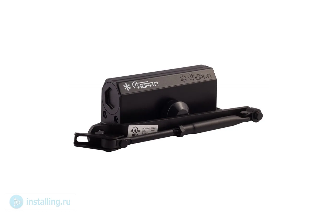 Универсальный по типу установки доводчик модели 3S с малым рычагом. Механизм устанавливается на двери весом 50–80 кг, сделанные из дерева, пластика, металла и других материалов. Рекомендуется для дверей, не требующих открывания на 180? (например, в тех случаях, когда открывание ограничено стеной). Для увеличения угла открывания двери до 180? корпус доводчика крепится на короб двери с противоположной стороны от петель.