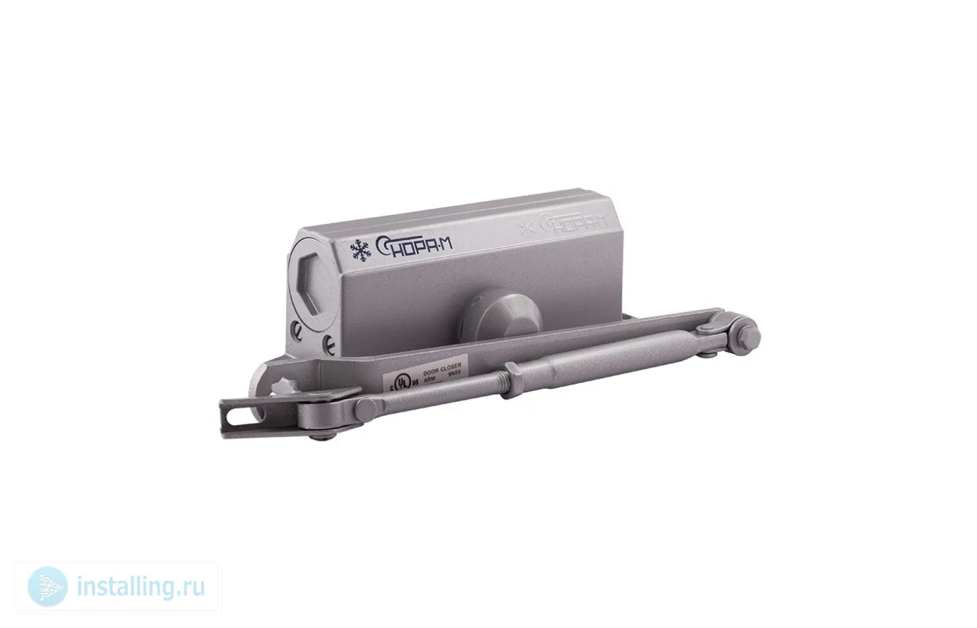 Универсальный по типу установки доводчик модели 3S с малым рычагом. Механизм устанавливается на двери весом 50–80 кг, сделанные из дерева, пластика, металла и других материалов. Рекомендуется для дверей, не требующих открывания на 180? (например, в тех случаях, когда открывание ограничено стеной). Для увеличения угла открывания двери до 180? корпус доводчика крепится на короб двери с противоположной стороны от петель.