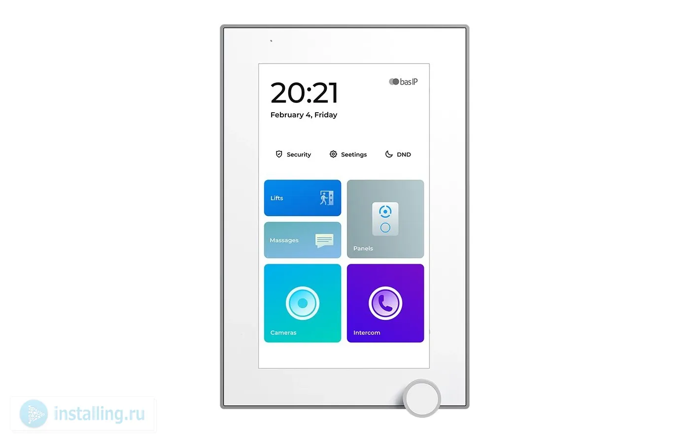 7-дюймовый IP-видеомонитор (800х480) для помещений с возможностью горизонтального и вертикального монтажа, возможностью управления лифтом, отображением сообщений от управляющей компании, 12В/PoE, 6Вт, подключением 8 камер, до 9 панелей, памятью для фото/видео (64 фото), SD карта до 128Гб и автоответчиком. ОПЕРАЦИОННАЯ система – Linux. Цвет - белый; 195x127x27 мм.