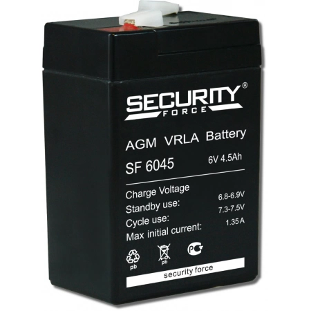 Свинцово-кислотный, герметичный аккумулятор, 6В/4,5Ач, ножевые клеммы 4,8 мм F1, 70х47х107мм, 0,65 кг