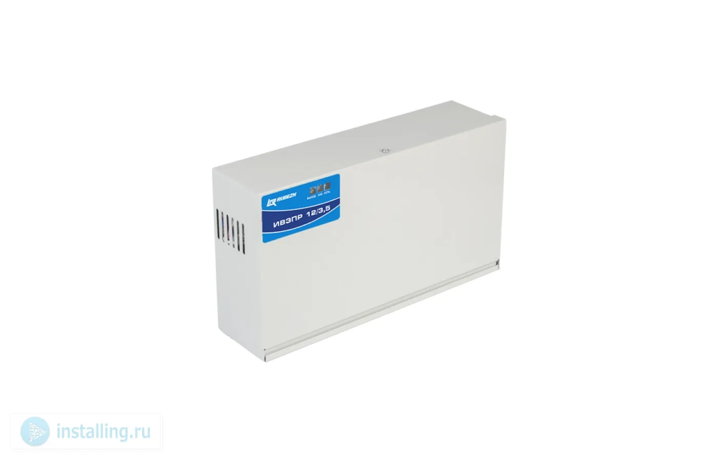 U-вх. 130...265 В, U-вых.13.4...13.8 В, I-вых.3.5 А ном. , величина пульсаций 100 мВ, под два АКБ 12 В 7 Ач; выход Авария СК, возможность подключения БР12; IP20, t-раб.-10...+50°С, 324х86х182 мм