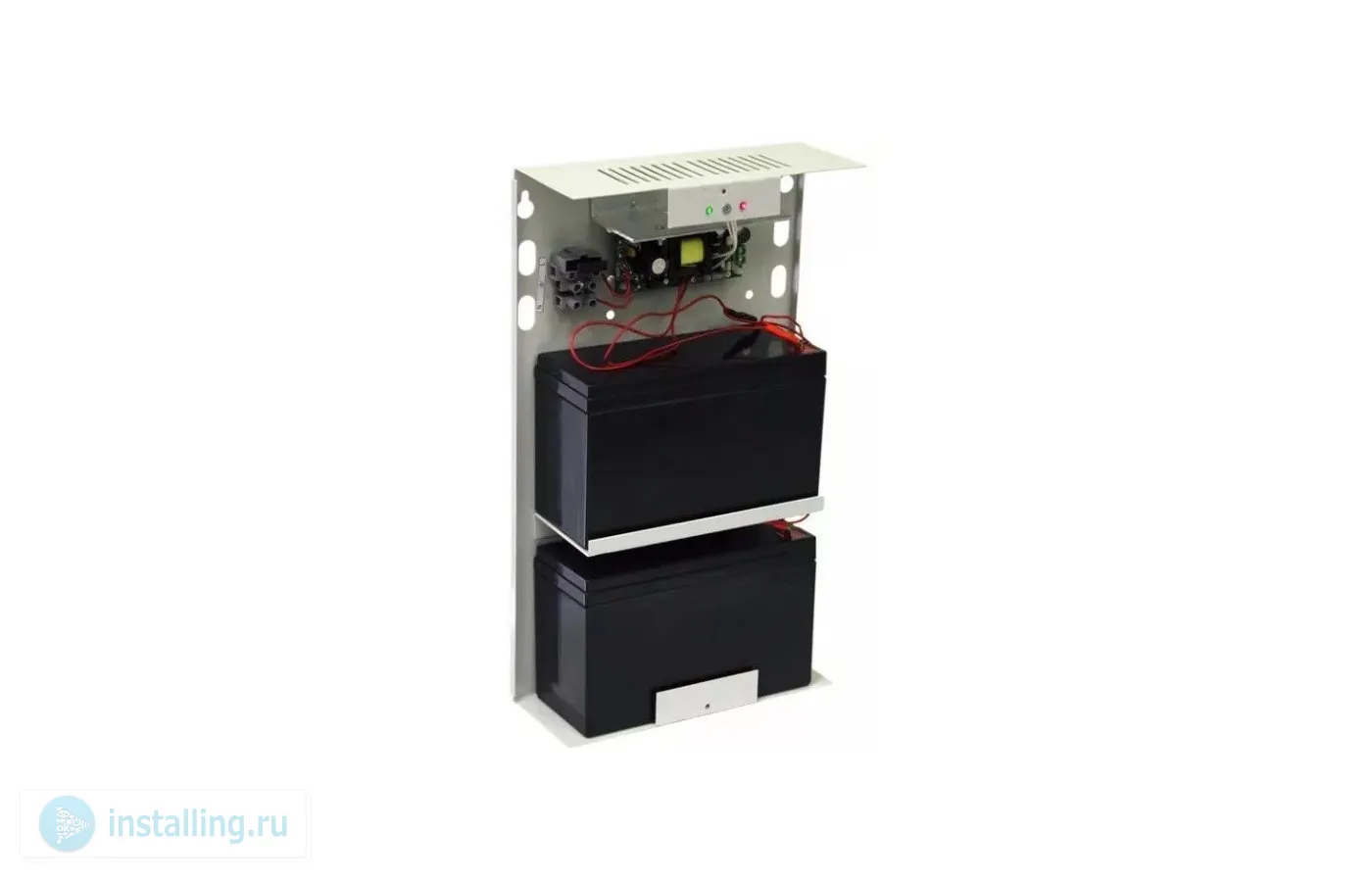 U-вх. перемен. 165...275 В, U-вых. пост. 13.4...14.0 В, I-ном. 3 А, I-макс 3.6 А, под АКБ 12В/7Ач х 2 шт; световая индикация режимов работы Сеть, АКБ; выход ОК наличие сети 220 В, защита от короткого замыкания, защита аккумулятора от глубокого разряда, t-раб. -10...+40°С, габ. размеры 310х180х70 мм