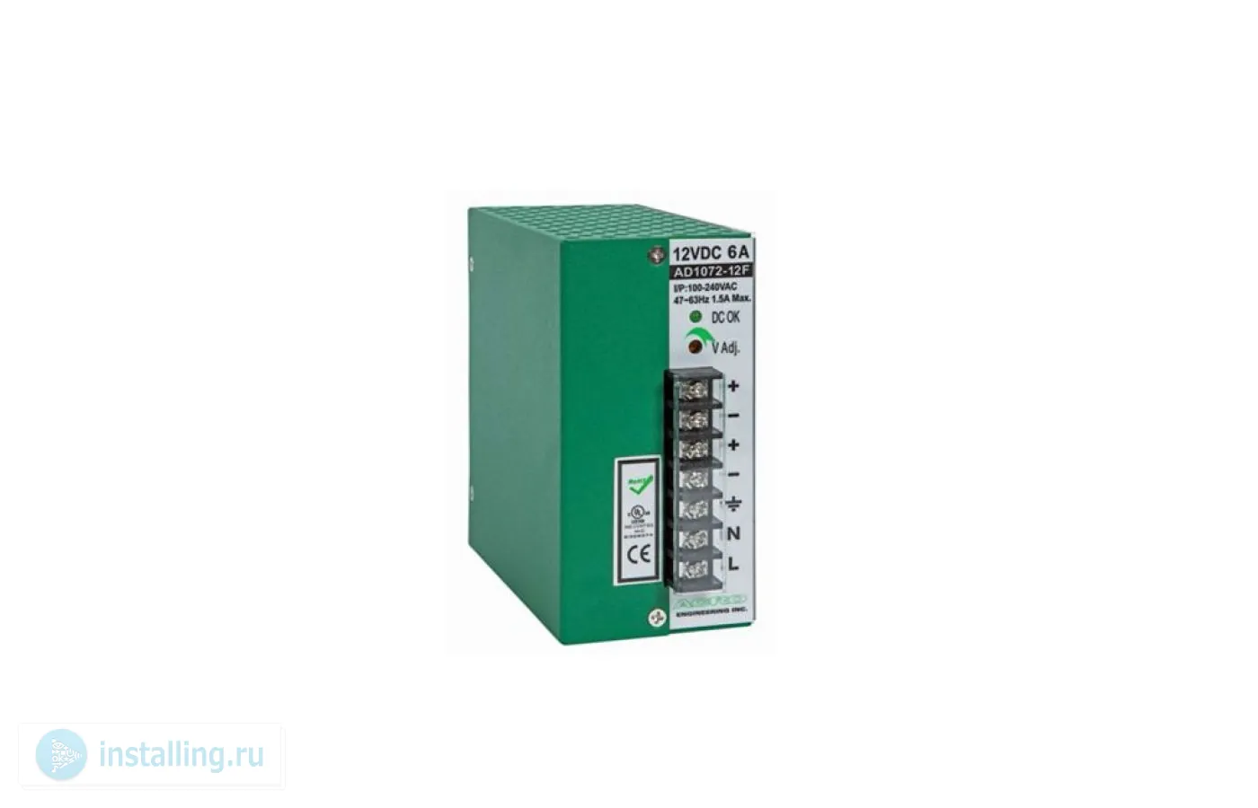 Выход 72 Вт/DC 12 В/6 A, -20…+70°C; 110 x121 x 56 мм.