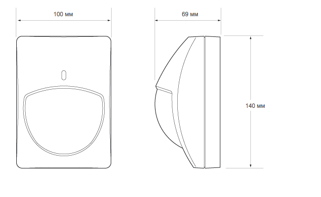 Извещатель охранный объемный оптико-электронный пассивный, микропроцессорный, твердая сферическая мультифокусная линза двойного действия 21х21 м - широкий угол или штора 45х2,4м - узкий угол с контролем зоны под извещателем, повышенная чувствительность, с двойным экранированием пироэлемента, защита от прямого света более 50000 люкс, и радиопомех более 30 В/м, температурный диапазон -20°C +50°C