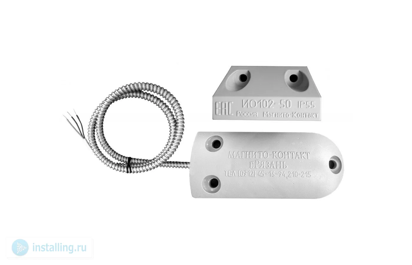 Магнитоконтактный для металлических поверхностей; контакты переключаются при тревоге, 14 мм контакты замкнуты , 40 мм контакты разомкнуты ; U-коммут.36 В, I-коммут.100 мА, P-коммут.7.5 Вт; IP55, t-раб.-50…+50°С, 90х40х10 мм. Кабель в металлорукаве из оцинкованной стали 600 мм. Пластиковый корпус. 0.155 кг.