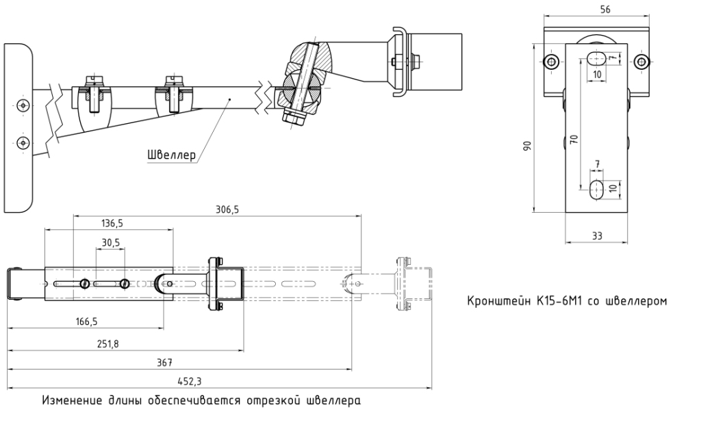 Кронштейн для крепления извещателя СПЭК-7-2 и СПЭК-7-6 и их модификаций, длина вылета кронштейна от 228 до 452 мм со швеллером. В комплект поставки входит 2 шт.