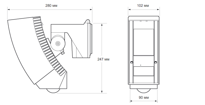 Извещатель охранный оптико-электронный с зоной обнаружения типа штора, уличный, дальность зоны обнаружения 100 м, ширина зоны обнаружения 4 м, переключаемые контакты, напряжение питания 9...16 В постоянного тока или 22...26 В переменного тока, ток потребления 40/80 мА, степень защиты оболочкой IP65, диапазон рабочих температур -25...+60°C, габаритные размеры 227х102х266 мм