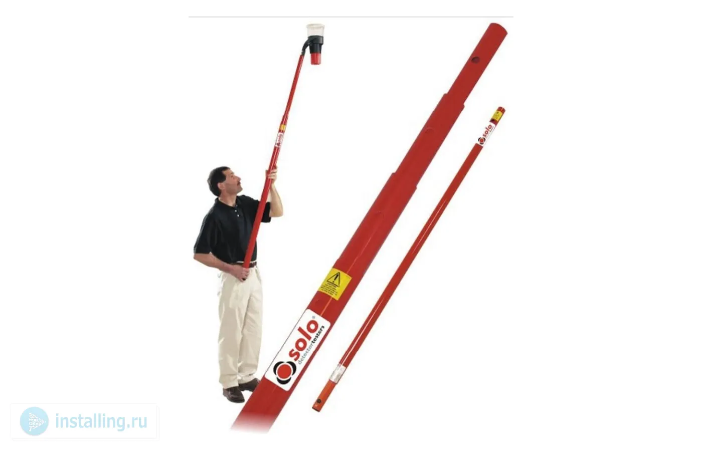 Четырехсекционная телескопическая штанга Solo 100 применяется совместно с приборами для снятия и проверки дымовых, тепловых и газовых пожарных извещателей, и позволяет обслуживать их на высоте до 6 метров с учетом роста человека