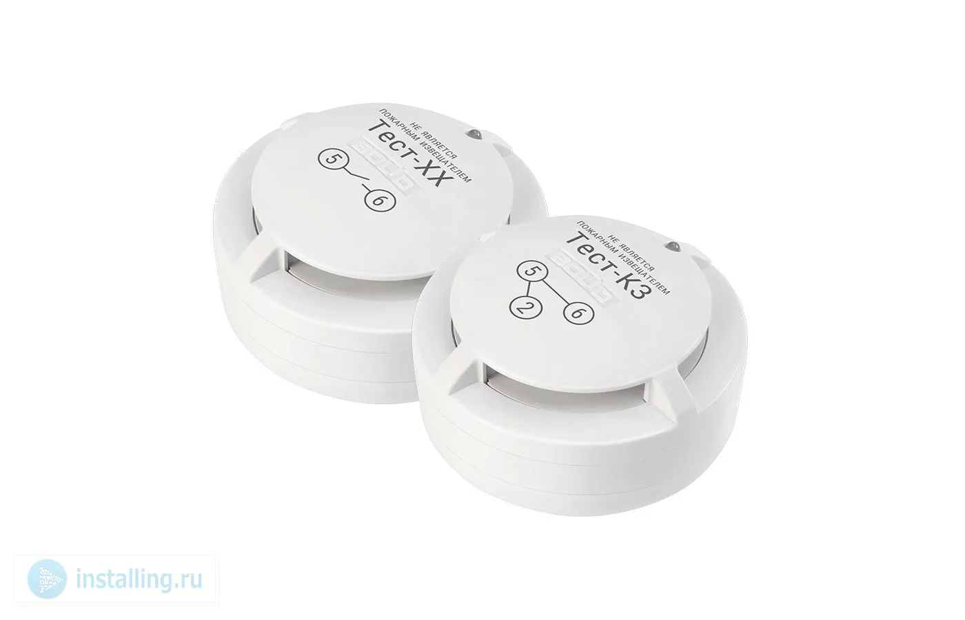 В составе два прибора:Тест-КЗ предназначен для имитации короткого замыкания в линии ДПЛС, Тест-ХХ предназначен для имитации обрыва в линии ДПЛС. Габ.размеры каждого O100х47 мм, вес 0.2 кг. Проверка происходит путём кратковременной (на время испытаний) установки прибора в базу пожарных извещателей.