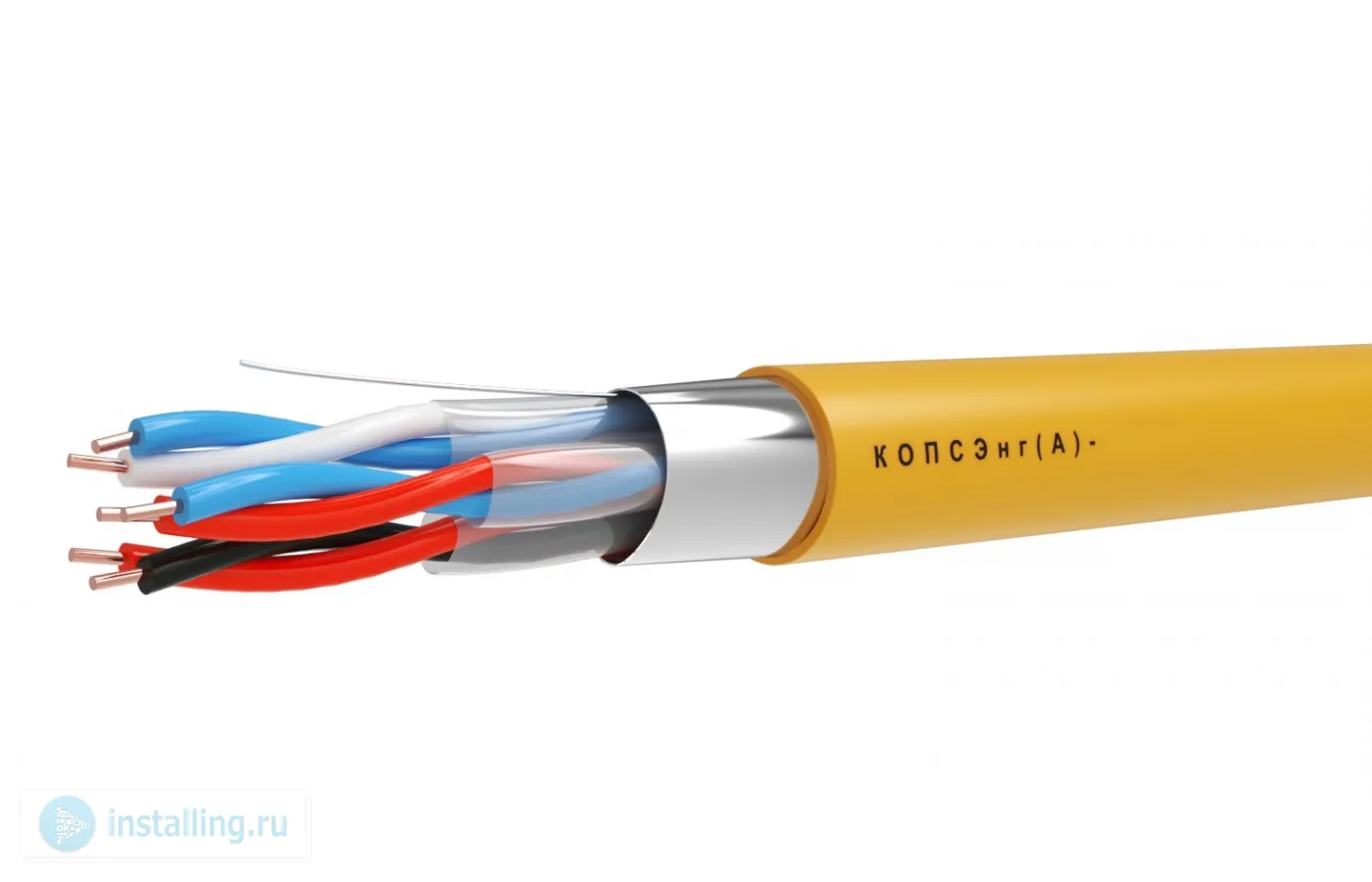 Кабель симметричный для систем промышленной безопасности, автоматики и электроники; однопроволочная медная жила диаметром 0.98 мм; экранированный; в огнестойкой оболочке из полимерных композиций не содержащих галогенов; t-экспл.-50...+80°С