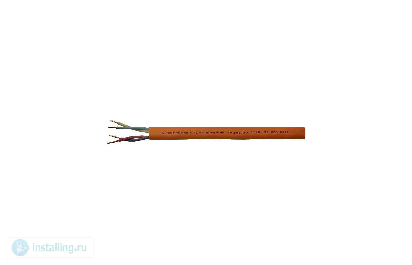 Кабель огнестойкий однопроволочный, симметричный, парной скрутки, с изоляцией из огнестойкой кремнийорганической резины в оболочке из безгалогенной полимерной композиции повышенной масло-бензостойкости, 1х2х0,2 мм.кв.