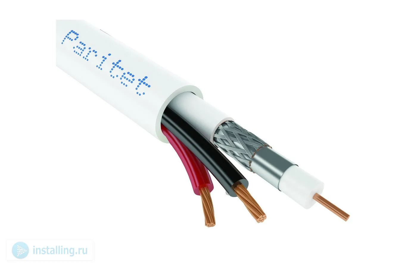 Кабель с коаксиальным РК 75-2-122 проводником и 2 жилами для питания с внешней поливинилхлоридной изоляцией, D-внешний = 8,5 мм, сечение жил = 0,75 кв. мм для внутренней прокладки
