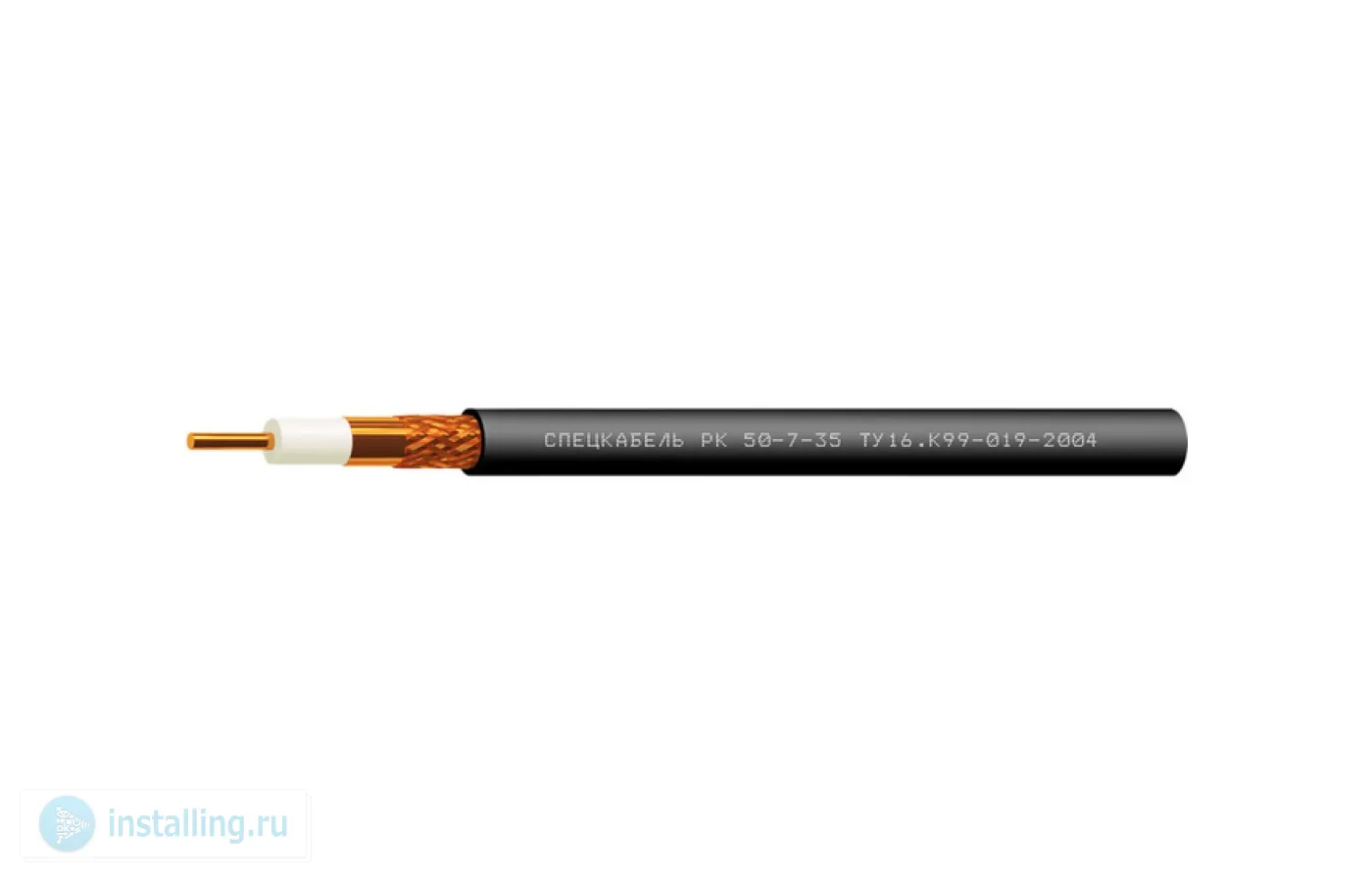 Для систем спутниковой и радиосвязи, одиночной прокладки; внутренний проводник: медный многопроволочный диаметром 2,62 мм; Наружный размер кабелей, DH, не более 10,3 мм; Изоляция: полиэтилен физического вспенивания диаметр по изоляции 7,25 мм ; Внешний проводник: оплетка плотностью 50–65из медных проволок диаметром 0,15 мм, наложенная поверх ламинированной медной фольги диаметр по внешнему проводнику 8,0 мм ; t-раб.–60...+85°С; Оболочка: ПВХ; Цвет: черный